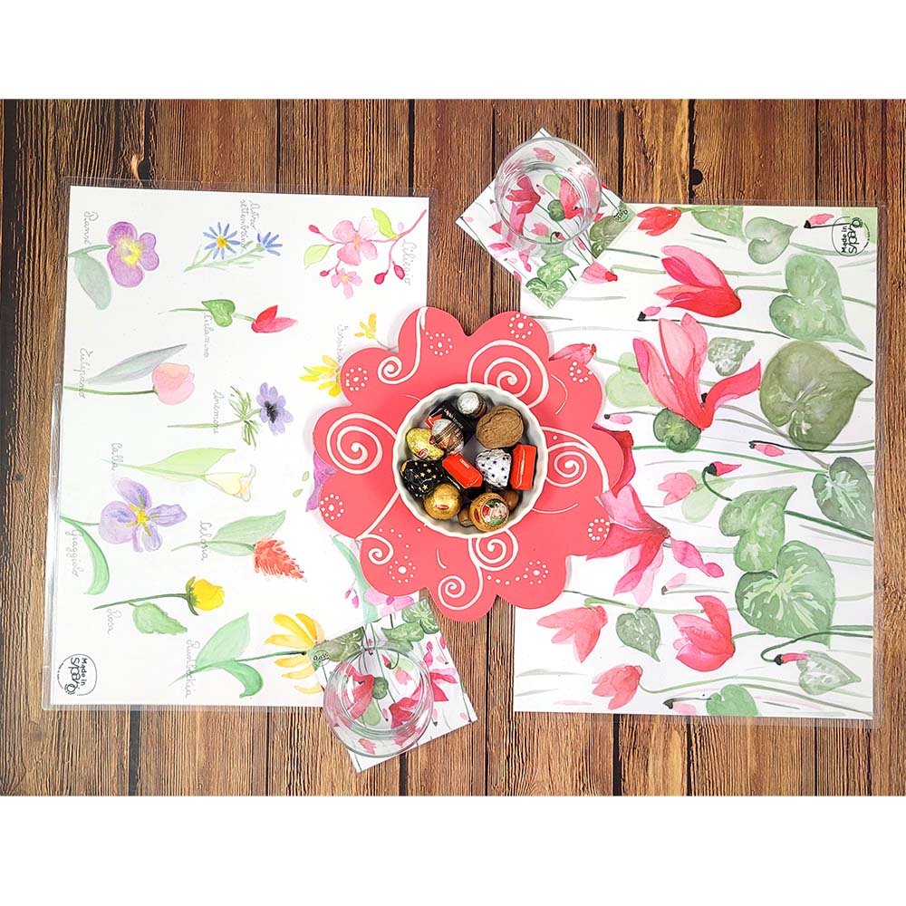 I sottobicchieri Botanica nascono per abbinarsi alle tovagliette di questa linea, ma possono essere utilizzati anche singolarmente per proteggere la tovaglia o tavoli in vetro o legno.