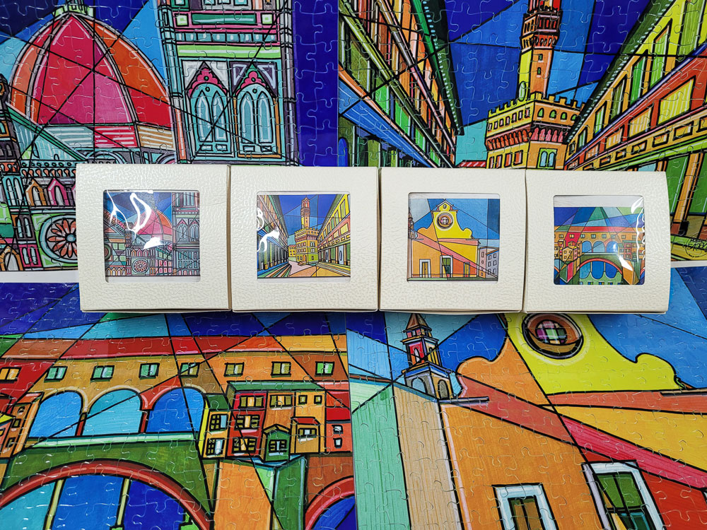 Il  disegno “SANTO SPIRITO”  riproduce esattamente la “Tovaglietta Ponte Vecchio”, opera originale dei nostri Artisti Speciali a Made in Sipario.