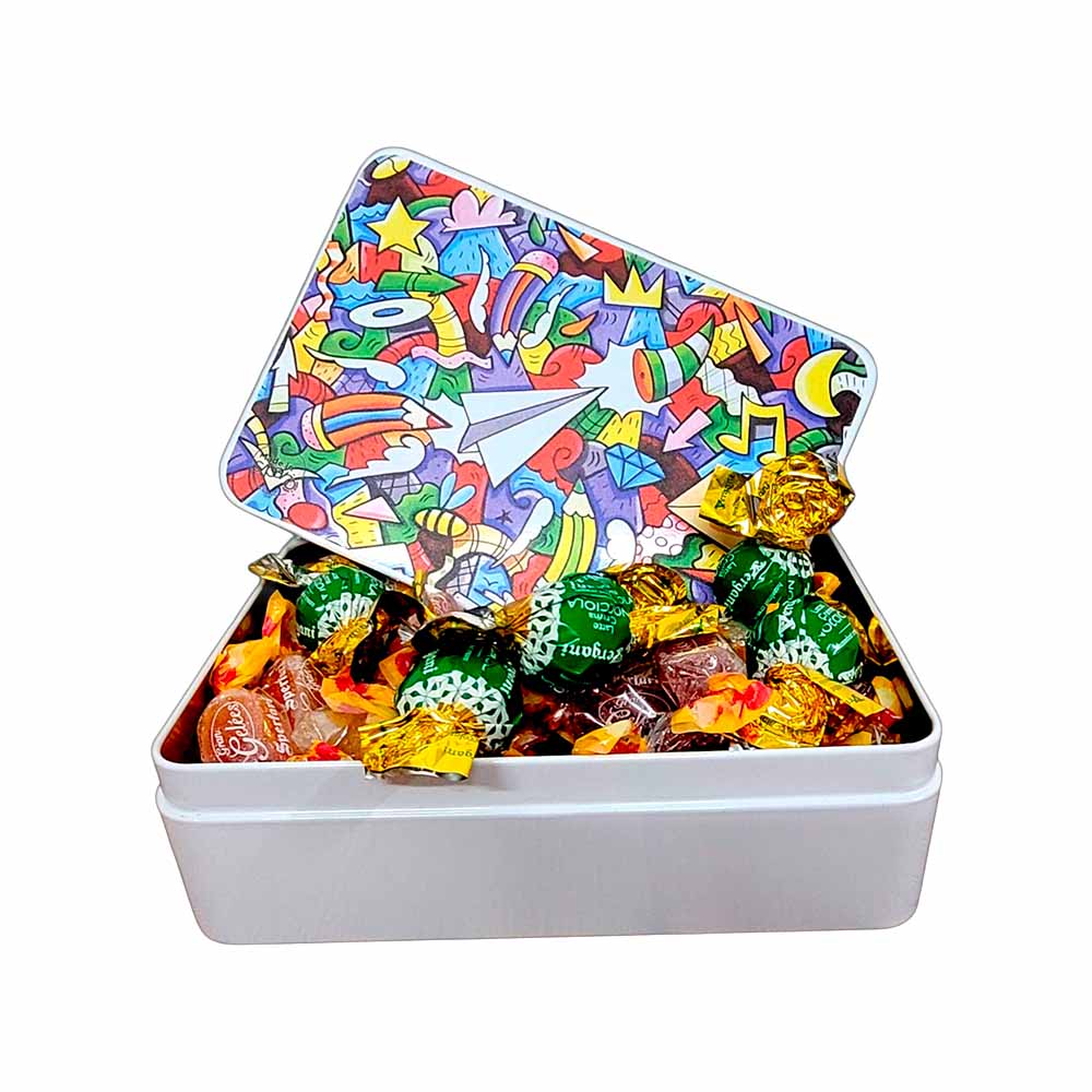 Le nostre scatole di metallo stampate con decori originali ย sono ideali da riempire con cioccolato, torroncini, biscotti oppure come porta gioie o per il ricamo o come contenitore dei pennarelli dei bambini!