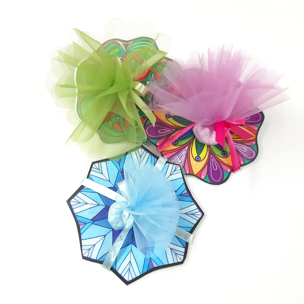 I soggetti sono: Fiocco di neve – Cane – Gatto – Gufo – Gallina – Fiore Multicolor – Cactus – Foglia Tropicale – Melone – Arancia – Pesce – Conchiglia – Camion – Auto – Casa – Fiore Rosso Verde – Cup Cake – Pecorella – Ninfea – Pera – Susina – Fragola – Papavero – Girasole – Pomodoro – Ciliegia