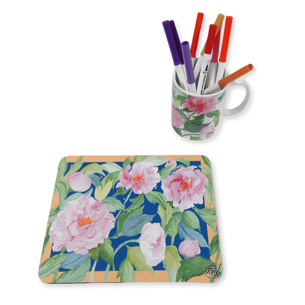 Il mouse-pad personalizzato con i disegni della “LINEA BOTANICA” รจ perfetto per aggiungere un tocco di colore, eleganza e originalitร  in modo discreto all’ufficio o alla postazione di lavoro.