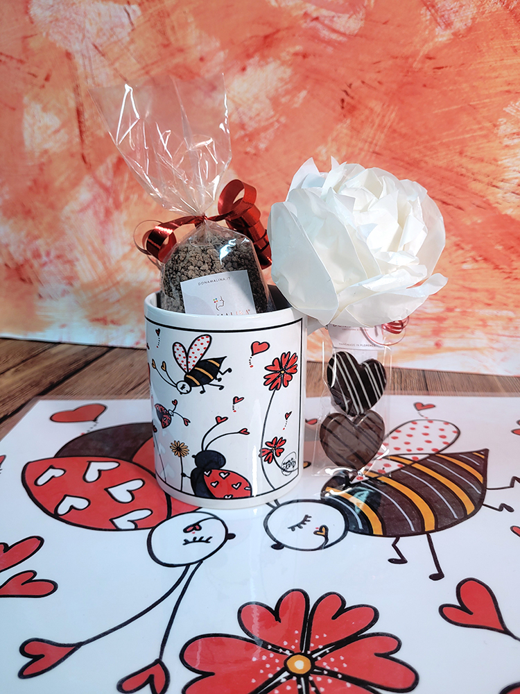 “APE – COCCINELLA” è un disegno originale Made in Sipario, che dopo essere stato colorato e decorato a mano viene stampato sulla tazza, così che ogni pezzo è la replica di una vera opera d’arte dei nostri Artisti Speciali, ideale per un “regalo speciale” alla persona che più ami.
