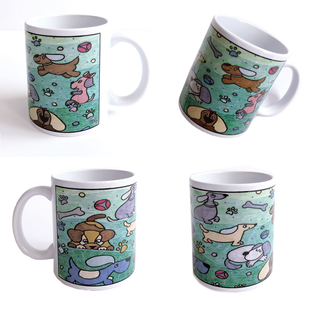Tazza MUG in ceramica, stampata in sublimazione con il disegno “I CANI”, una fantasia originale Made in Sipario.