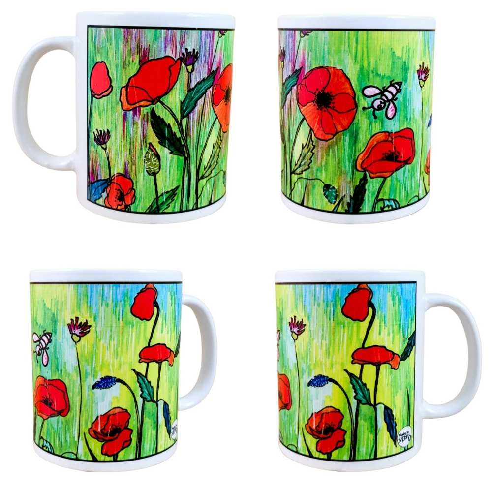 Tazza MUG in ceramica, stampata in sublimazione con il disegno “CAMPO DI PAPAVERI”, una fantasia originale Made in Sipario.