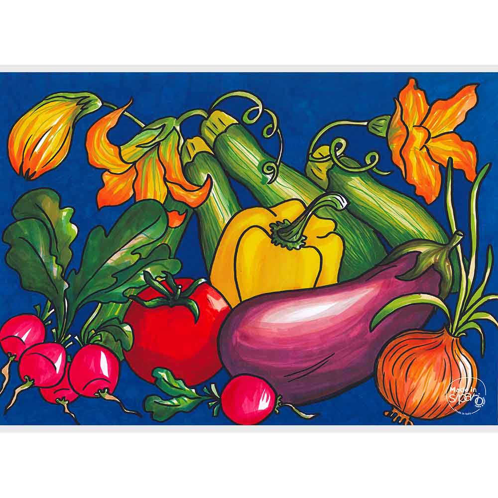 Tovaglietta in cartone, stampata a colori con fantasia originale Made in Sipario, plastificata in modo da renderla lavabile.