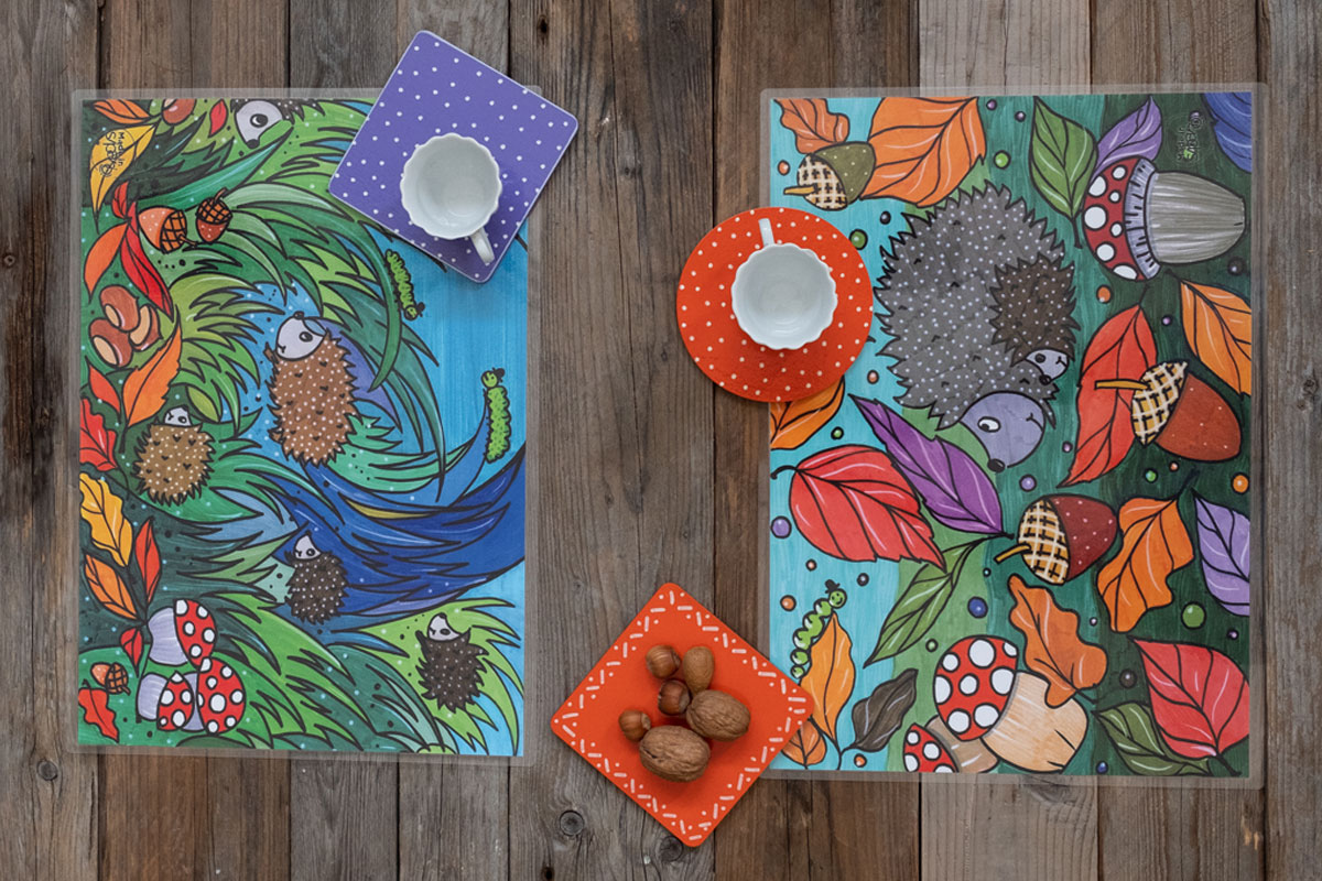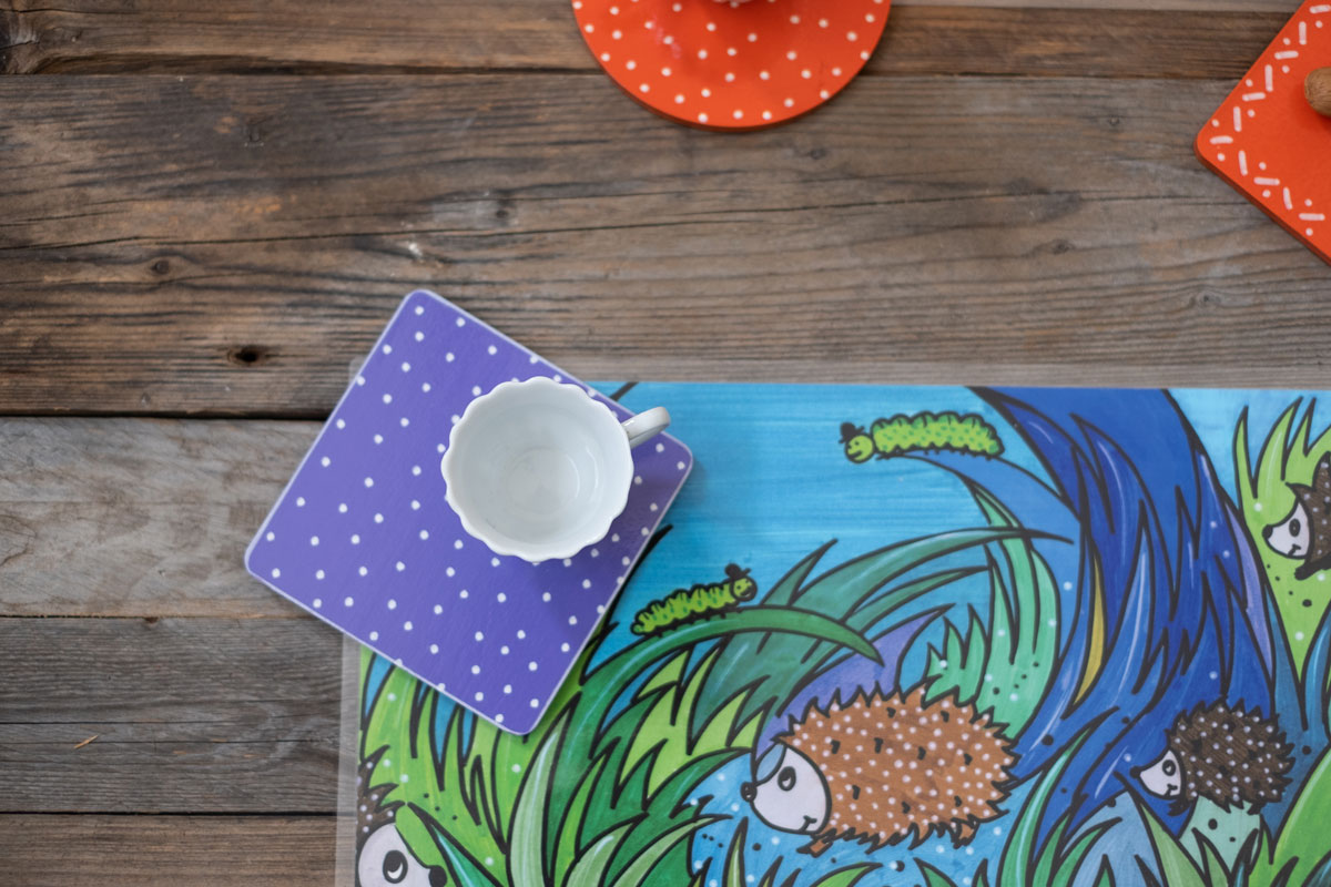 Tovaglietta in cartone, stampata a colori con fantasia originale Made in Sipario, plastificata in modo da renderla lavabile.