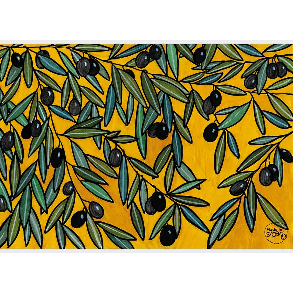 Colore Variante Unica con Fronte e Retro differenti. Da un lato il disegno dei rami di “ULIVO” nei toni dei verdi tipici delle foglie con le “olive” ben mature. Il retro rappresenta un paesaggio della campagna toscana.