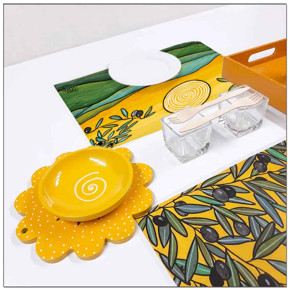 Stampata su disegno originale Made in Sipario, così che ogni pezzo è la riproduzione di una vera opera d’arte dei nostri Artisti Speciali, da usare per abbellire la tavola.