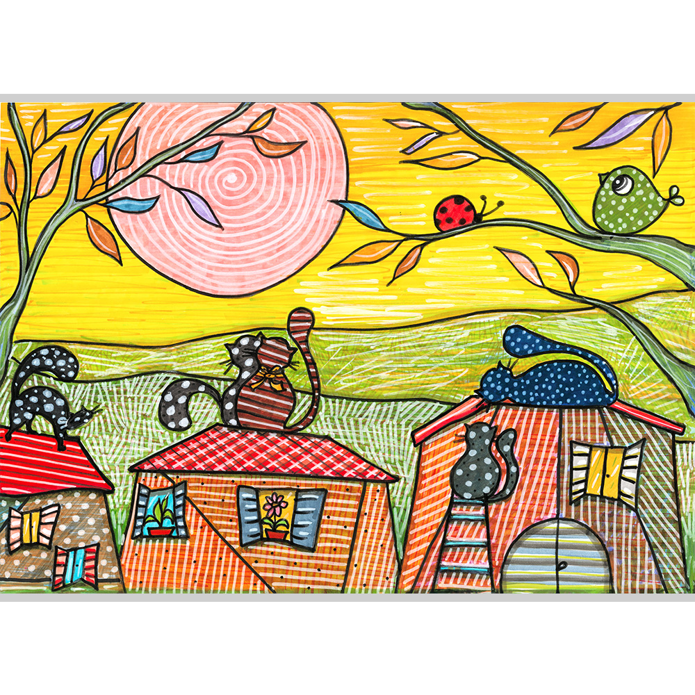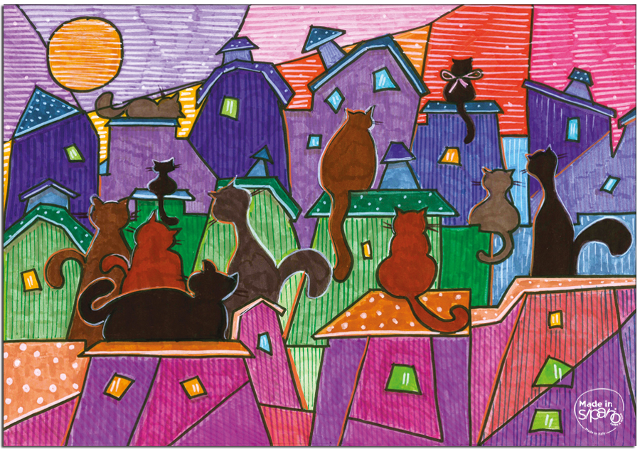 Colore Variante Unica con Fronte e Retro differenti: da un lato i Gatti sui Tetti di notte, dall’altro i Gatti sui Tetti di giorno.