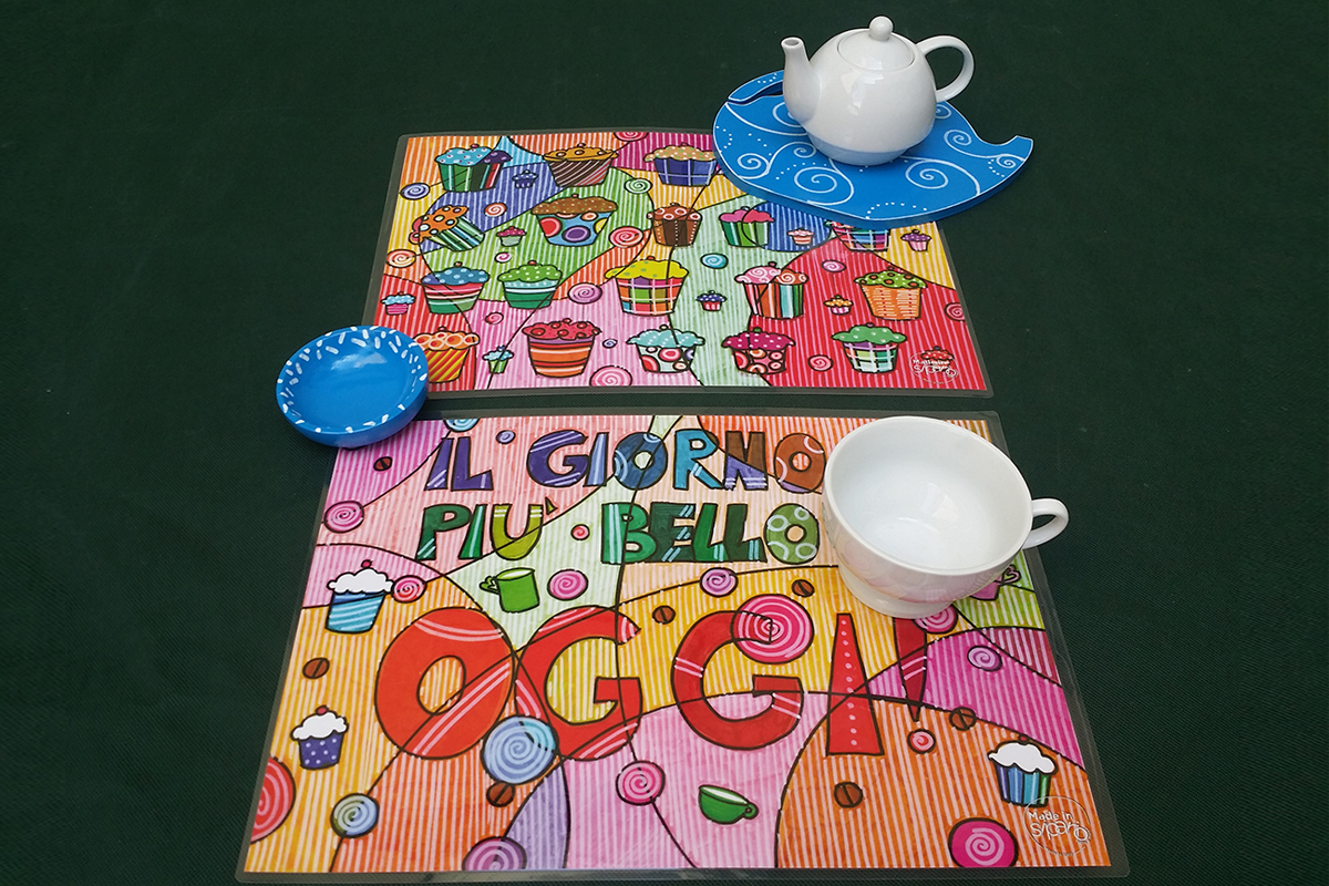 Stampata su disegno originale Made in Sipario, così che ogni pezzo è la riproduzione di una vera opera d’arte dei nostri Artisti Speciali, da usare per abbellire la tavola.