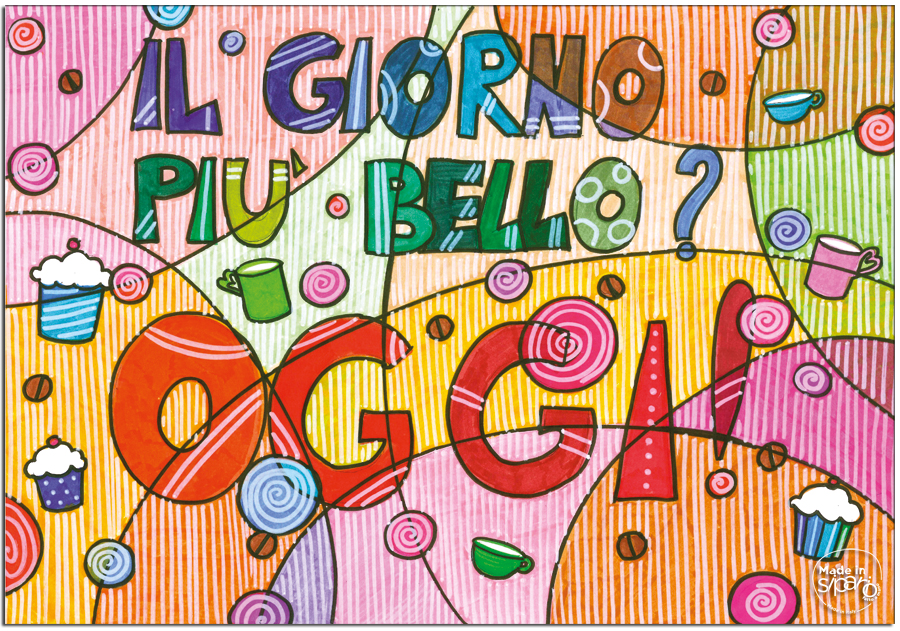 Colore Variante Unica con Fronte e Retro differenti: da un lato la Scritta, dall’altro i Dolcetti.