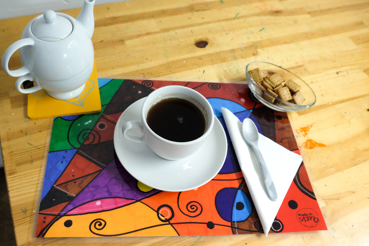Stampata su disegno originale Made in Sipario, così che ogni pezzo è la riproduzione di una vera opera d’arte dei nostri Artisti Speciali, da usare per abbellire la tavola.