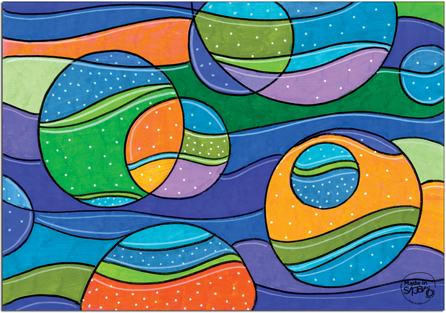 Tovaglietta in cartone, stampata a colori con fantasia originale Made in Sipario, plastificata in modo da renderla lavabile.