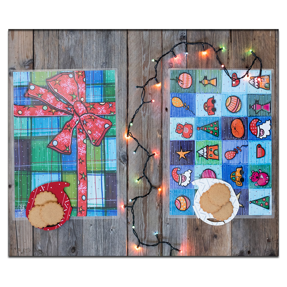 Colore Variante Unica, nei toni vivaci e allegri del Natale: dal rosso all’arancio, dal verde al blu con toni intermedi di azzurro, celeste e verde cinabro. Da un lato il disegno presenta un grande “Pacco Regalo chiuso da un bel fioco rosso; dall’altro lato, invece, ci sono tanti piccoli disegni tipici del periodo natalizio: il Babbo Natale, l’arancia, l’albero di Natale ecc…