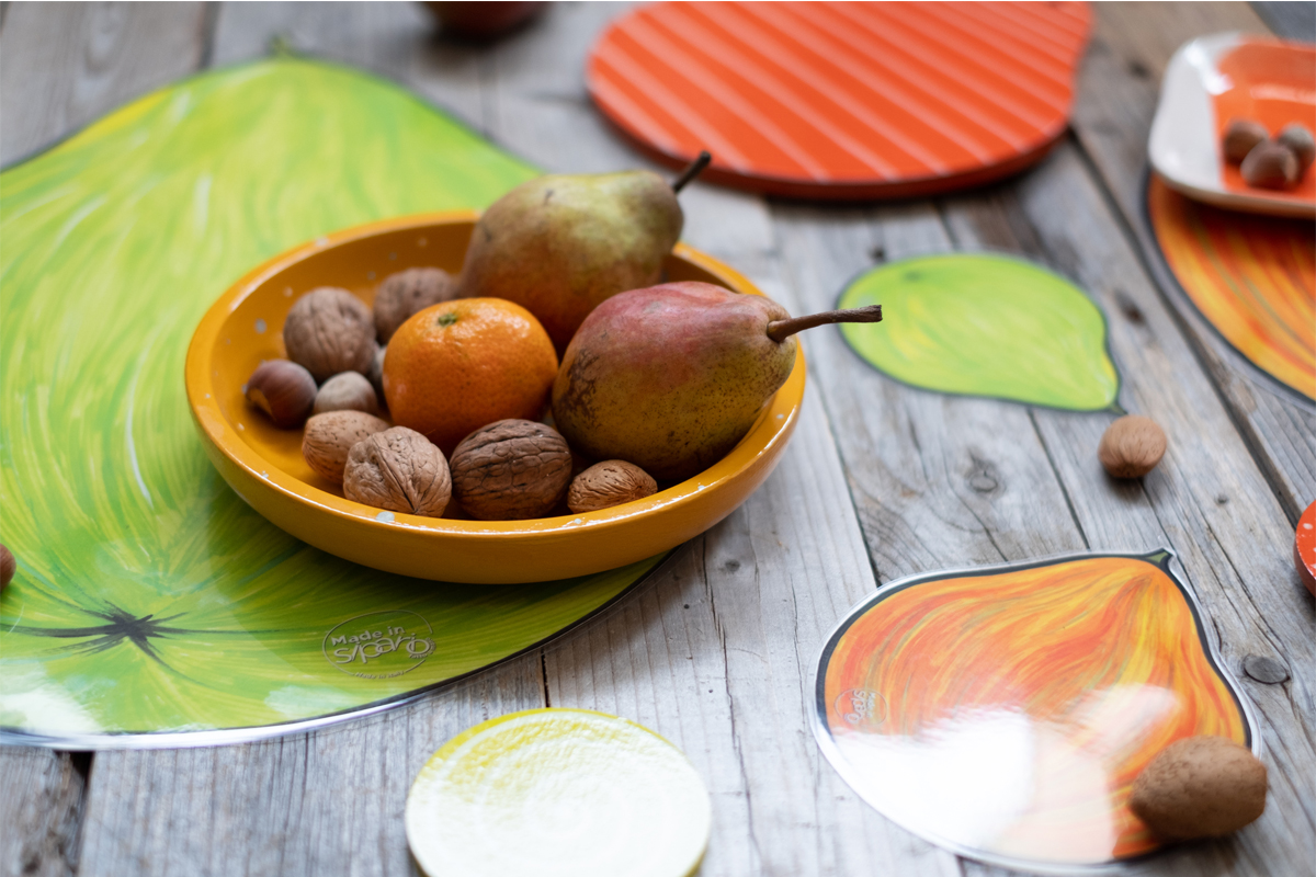 Questa è l’evoluzione della tovaglietta rettangolare perché ognuna si caratterizza non solo per il disegno ma anche per la forma diversa a seconda del disegno realizzato e colorato dai nostri Artisti Speciali. I decori e il ritaglio fatto a mano impreziosiscono questa linea così da renderla una vera opera d’arte da usare per abbellire la tavola.