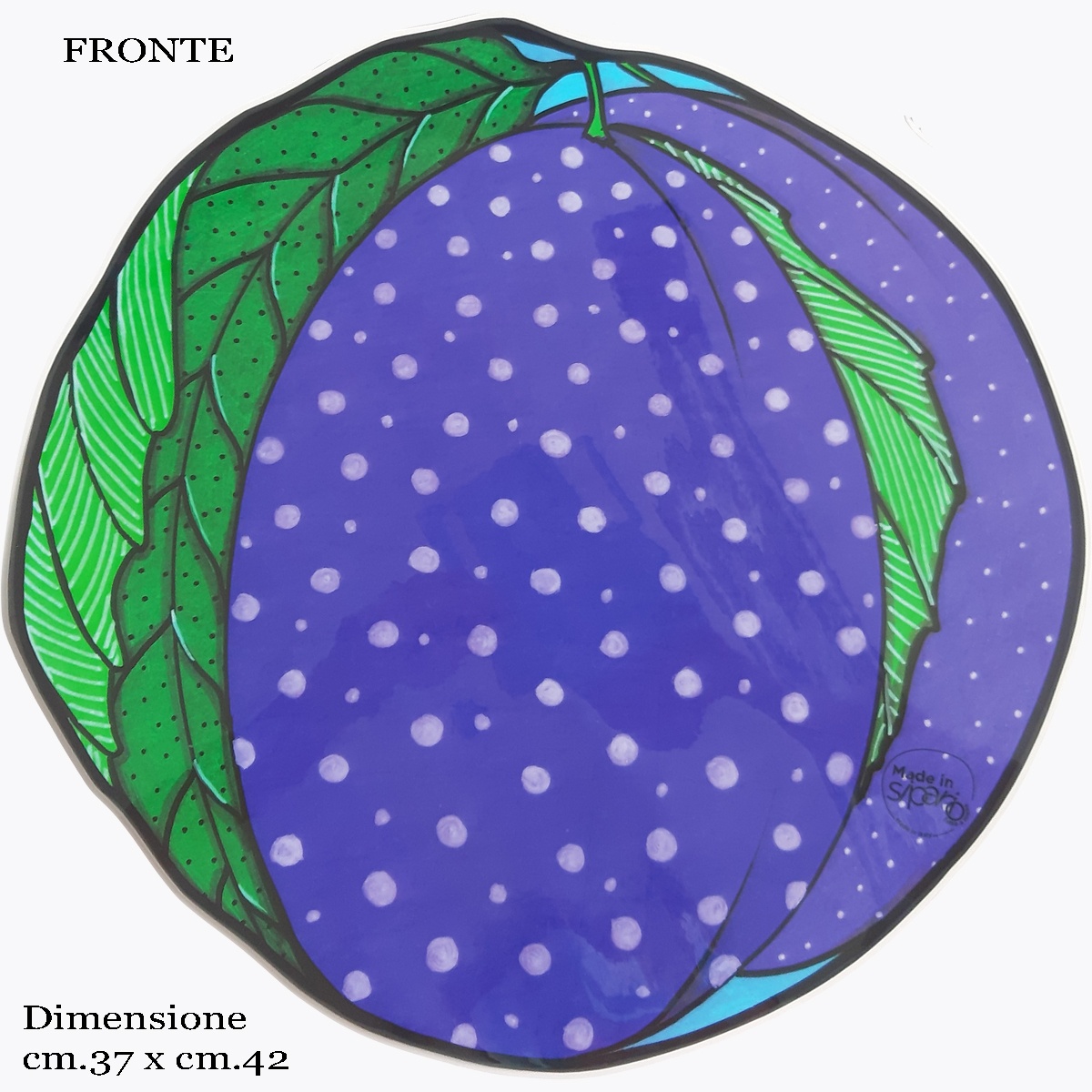 Misure: cm.38 X CM.36 , ingombro massimo, indicativo perché perché la tovaglietta sagomata è ritagliata a mano .