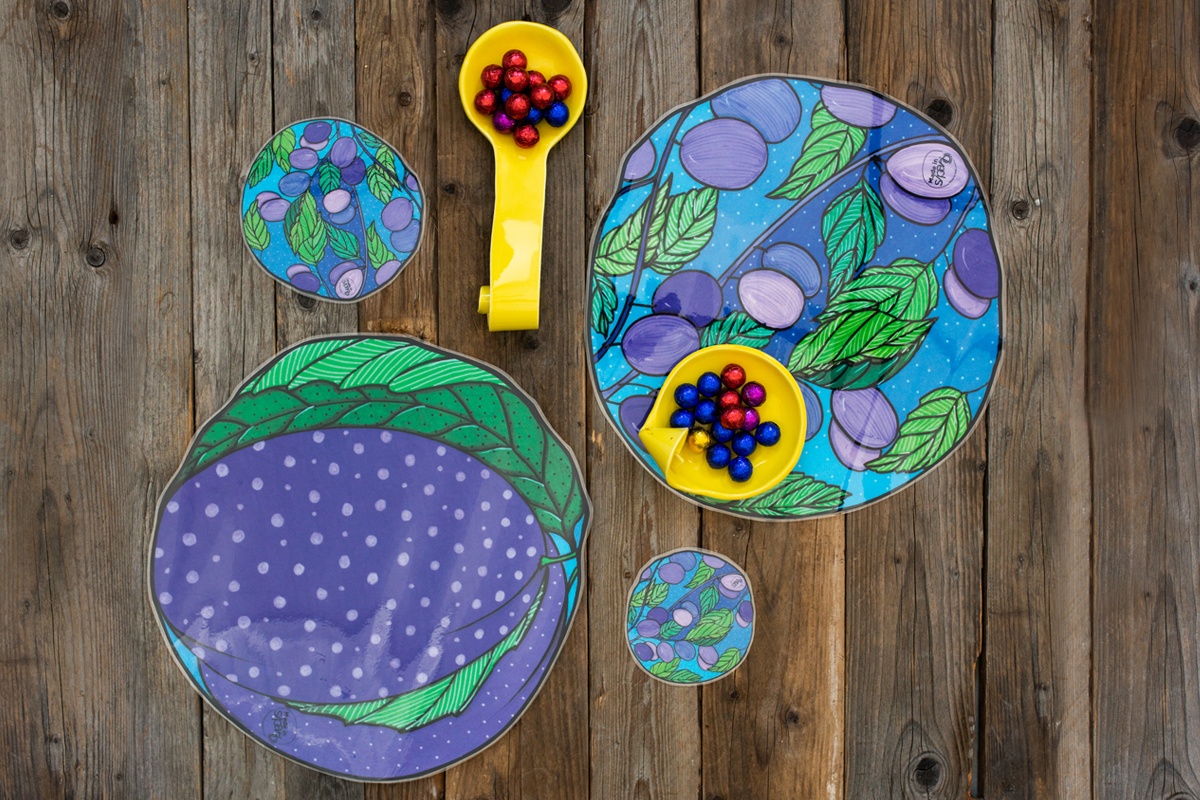 Questa è l’evoluzione della tovaglietta rettangolare perché ognuna si caratterizza non solo per il disegno ma anche per la forma diversa a seconda del disegno realizzato e colorato dai nostri Artisti Speciali. I decori e il ritaglio fatto a mano impreziosiscono questa linea così da renderla una vera opera d’arte da usare per abbellire la tavola.