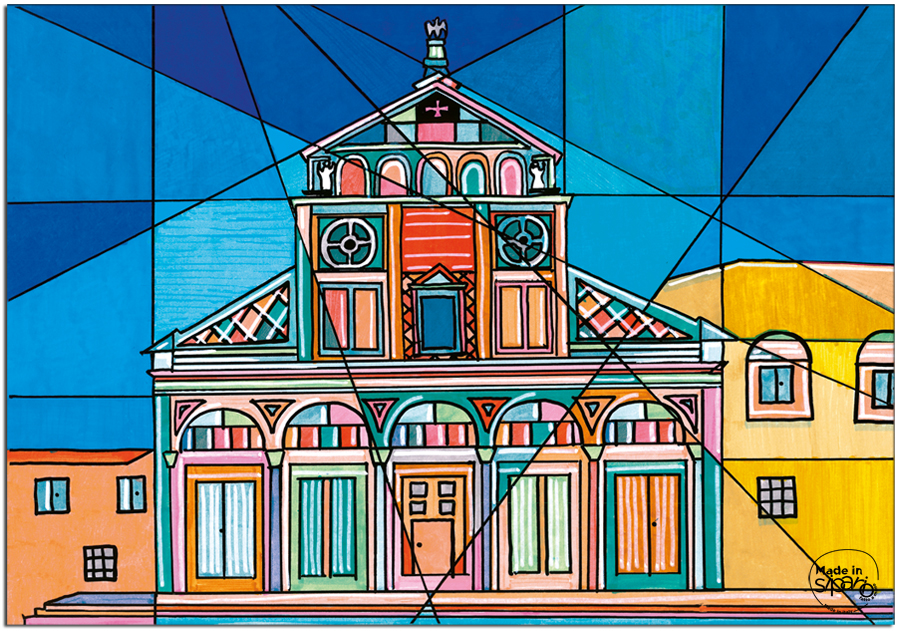 Colore Variante Unica sui toni dei Blu / Verdi / Turchesi e Terre. Disegni differenti su Fronte e Retro, da un lato la famosa Chiesa di “San Miniato” di Firenze e dall’altro disegni del “Giglio di Firenze”.