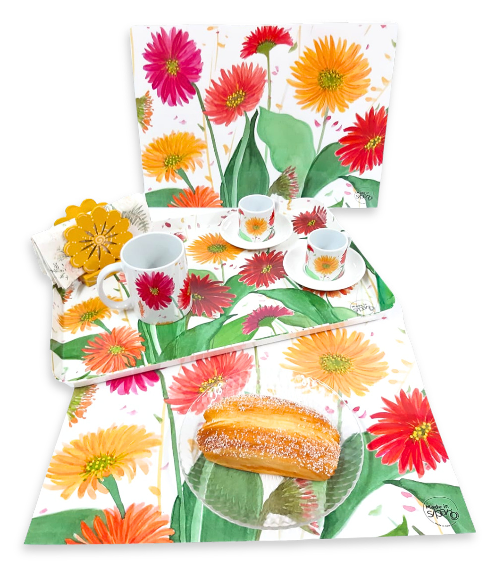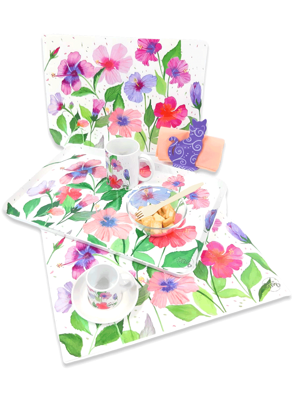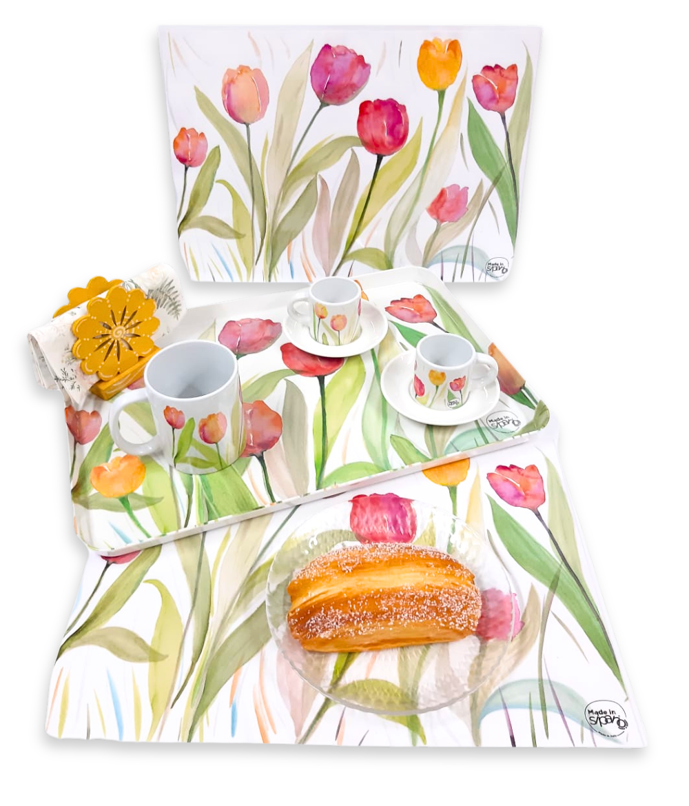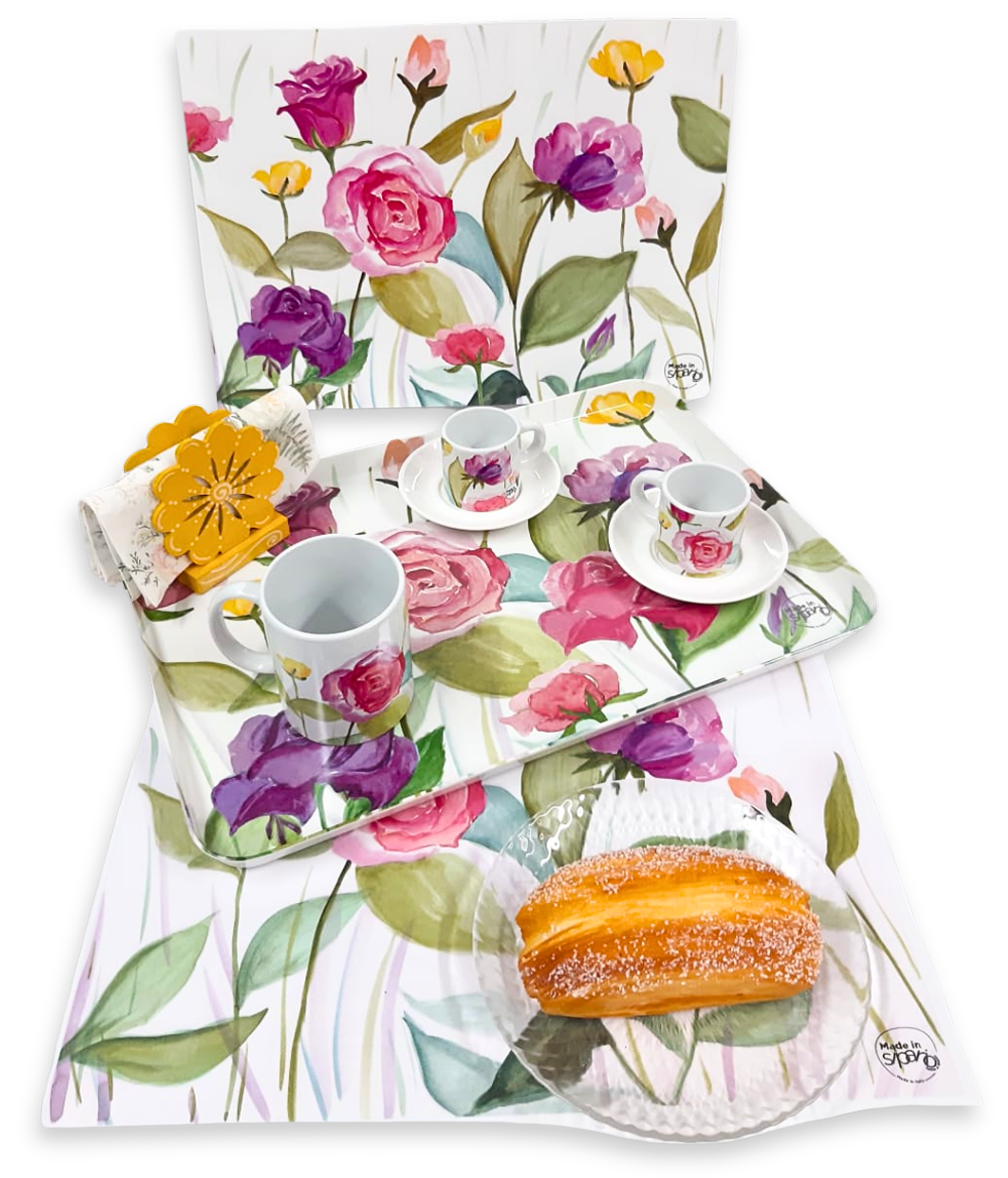 VASSOIO in Melamina, di forma rettangolare, stampato con disegni originali fatti con la tecnica dell’acquerello dagli Artisti di Made in Sipario.