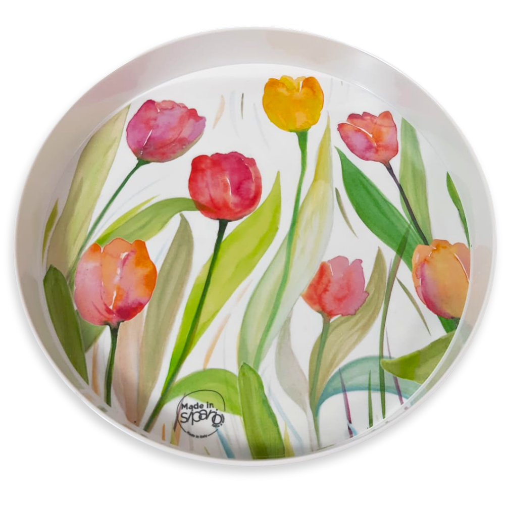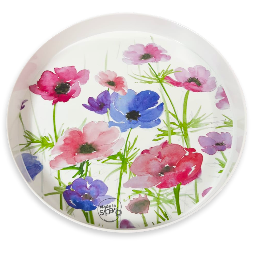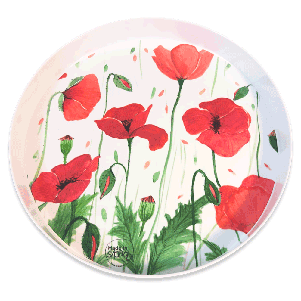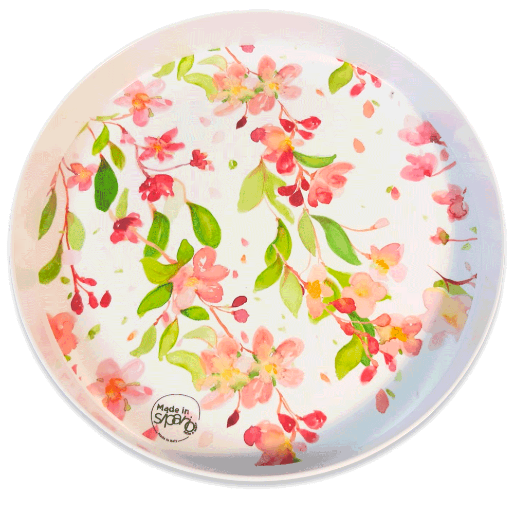 VASSOIO in Melamina, di forma rotonda, stampato con disegni originali fatti con la tecnica dell’acquerello dagli Artisti di Made in Sipario.