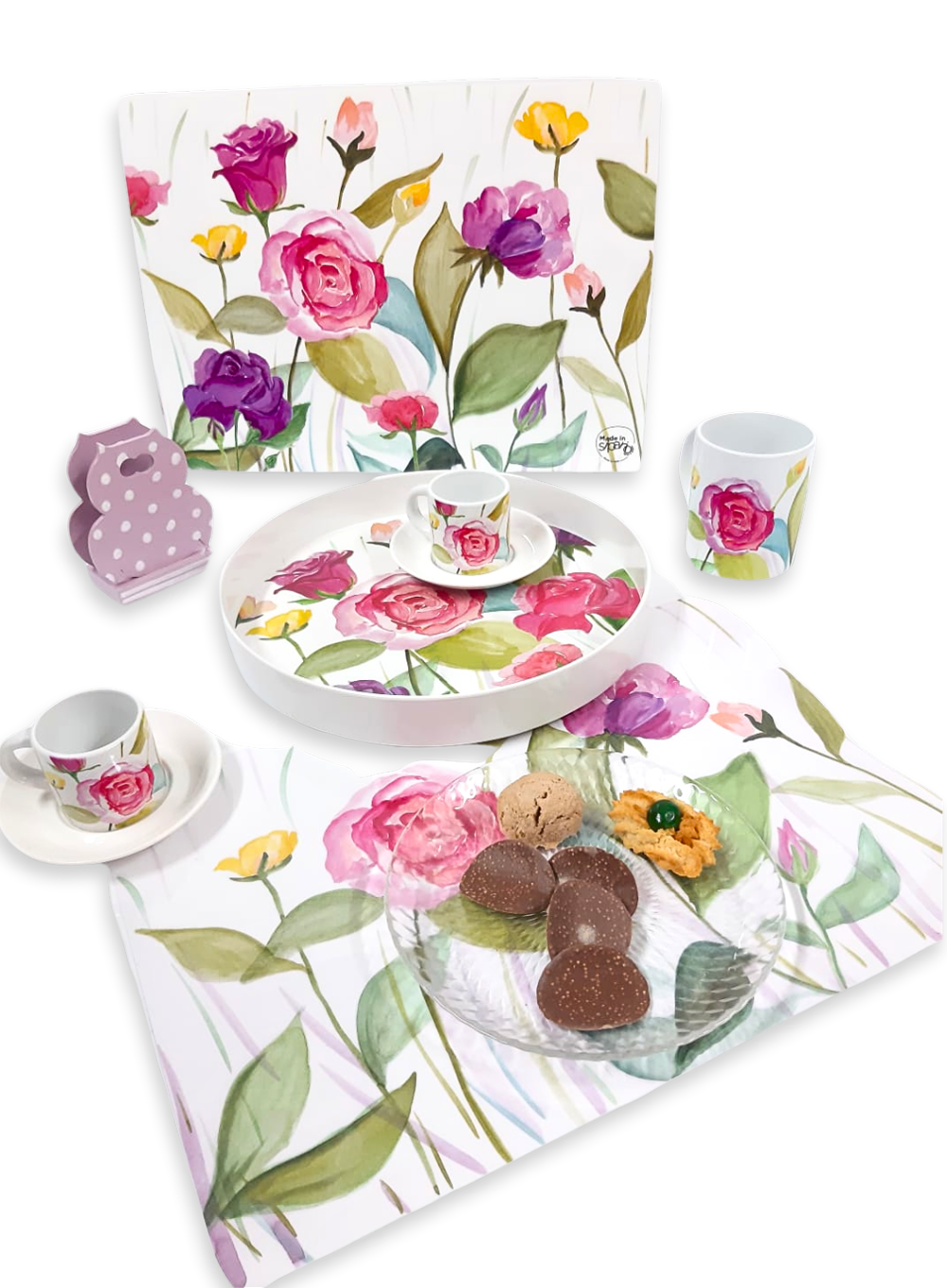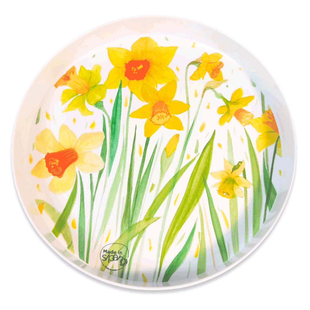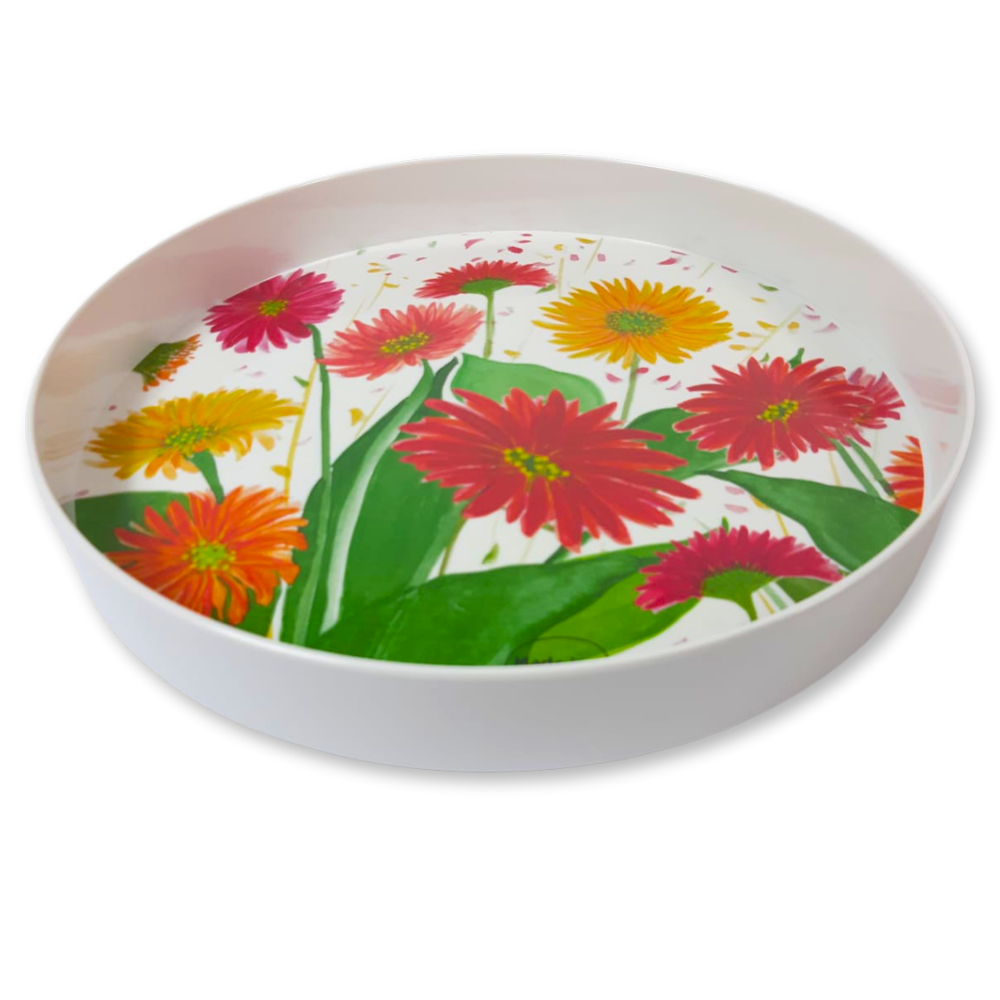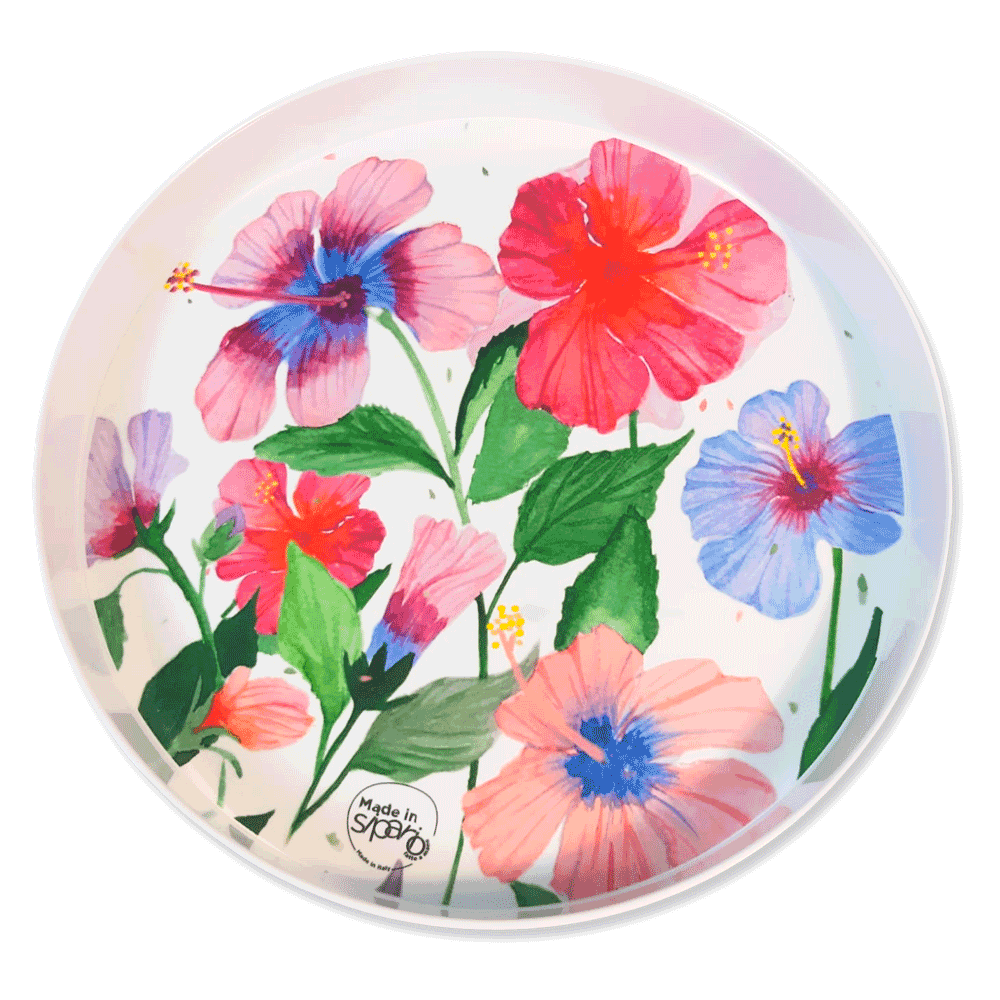 VASSOIO in Melamina, di forma rotonda, stampato con disegni originali fatti con la tecnica dell’acquerello dagli Artisti di Made in Sipario.